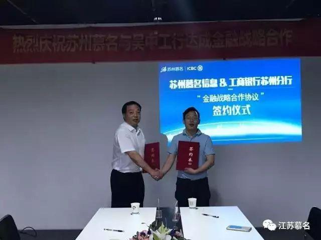 2017年6月5日,苏州慕名信息与中国工商银行苏州吴中支行举行银企金融合作协议签约仪式,正式建立起长期、友好的合作关系。